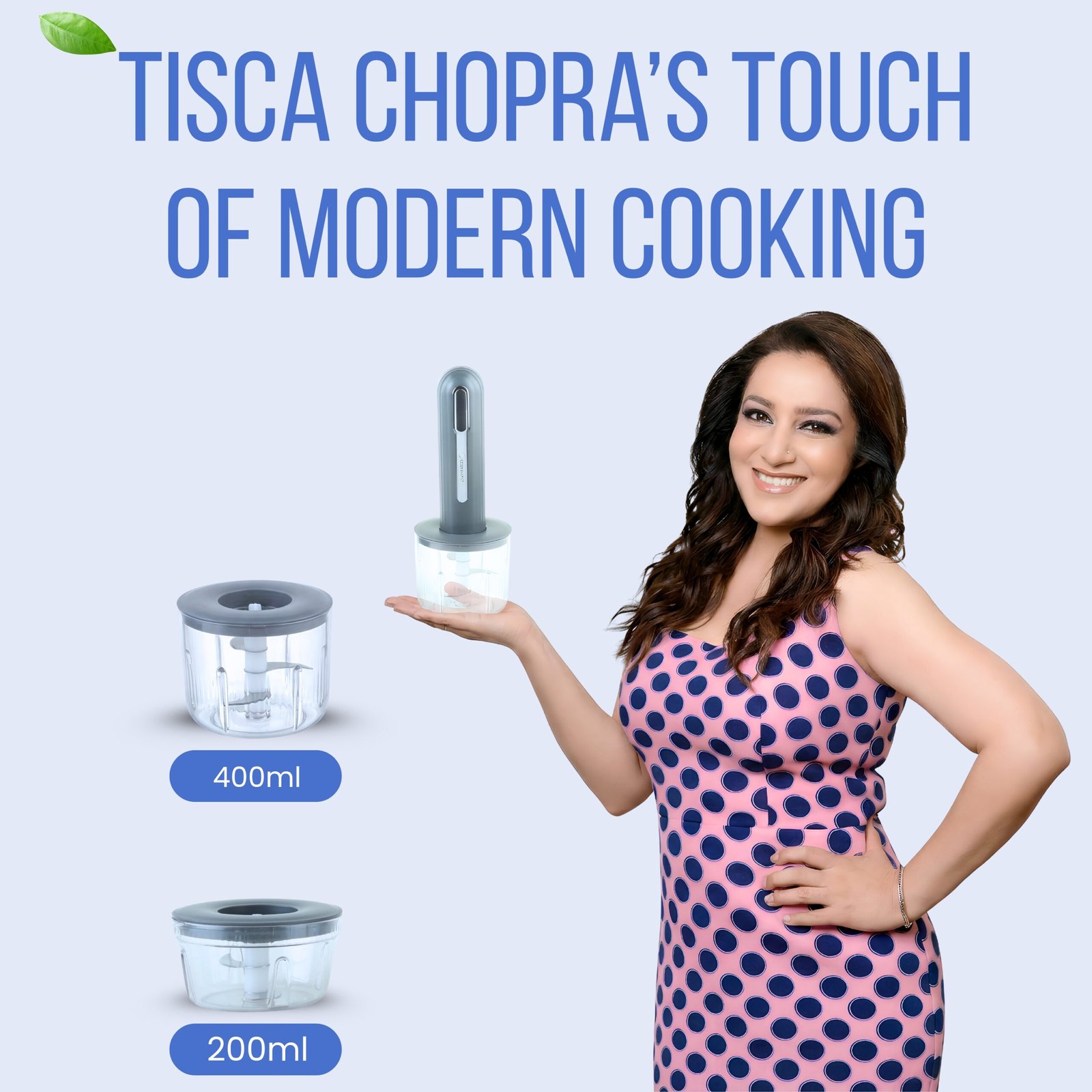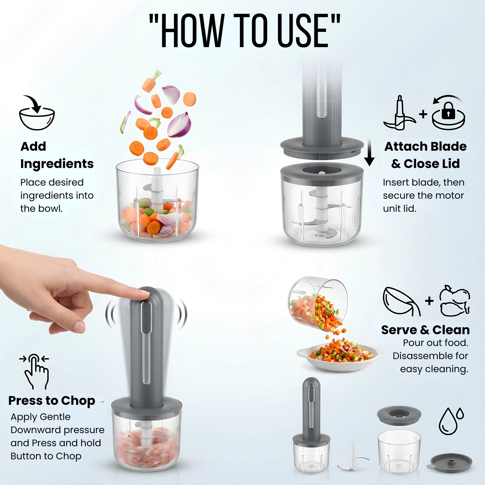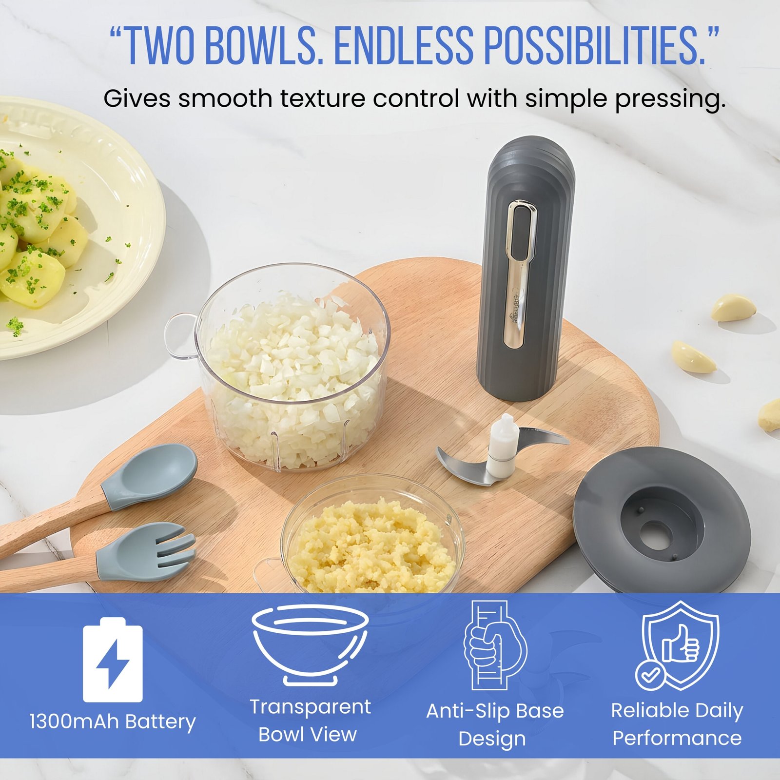 Goodscity Portable Food Chopper with Dual Bowls, Compact Kitchen Processor| Food Prep Tool for Baby, Kitchen, Travelling| 1300mAh Strong Battery| 2 Bowls 400ml, 200ml| USB Rechargeable | Grey| GC261