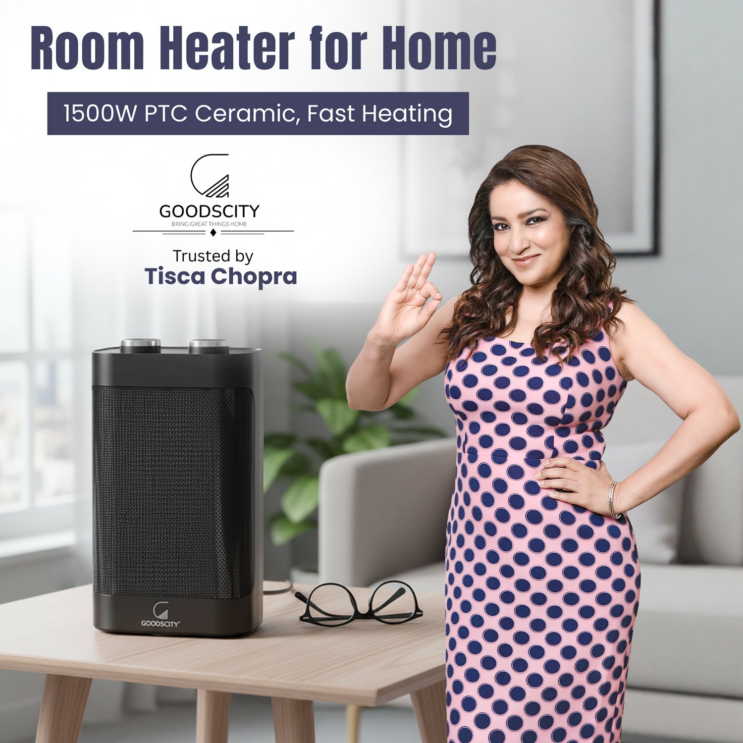 A Small and compact Room Heater for Indoor Use. Its Stylish in look and easy to carry anywhere. Best and Safe to use for 1 or 2 people Directly from nearby Distance It come with Safety feature of Tip Over so good to use for Senior CItizen and Kids And comes with 12 months Warranty Adjustable Speed, 70° Wide Oscillation, Tip-Over Protection, Adjustable Temperature, Fast Heating, Flame Resistant, Overheat Protection, Light Weight, Portable, Convenient to Carry, Low Noise